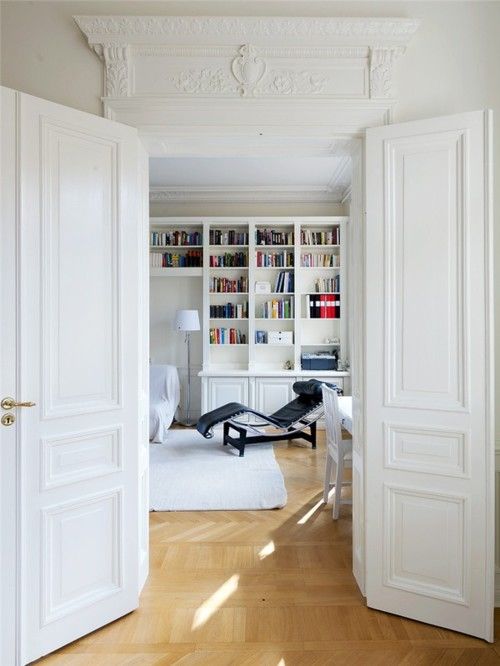 The title of this post should not be confused with 'White Power'. Since we got legal disclaimer out of the way, I want to share the wonderful world of white walls. My appreciation for the bright shellack came when I was sprawled out in bed, thinking what would be a nice color to paint the walls of my bedroom. Then I had one of the best ideas I will ever come to know. Exaggerating is one of my best qualities. I'll leave them white. Less work, you know? Plus with my plethora of black and white framed photos in black frames, I'll be sleeping in a gallery and I'm okay with it. So now that you know my game plan, I think you should see other peoples' game plans for how they make white walls work for their space. The clean and sometimes stark color can be offset by rich architectural moldings, or different pieces of art (i.e. black and white photography). White walls are really just a standard, like Standard Luxe. See what I did there?
